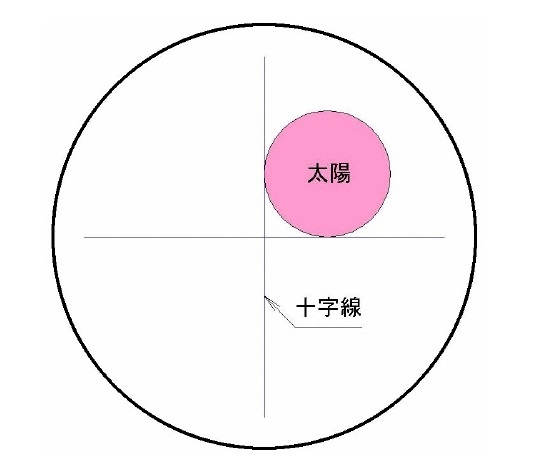 ②望遠鏡を反転し反位置で太陽が入ってくる(器械十字マス左下)時間と角度を手簿に記入する。